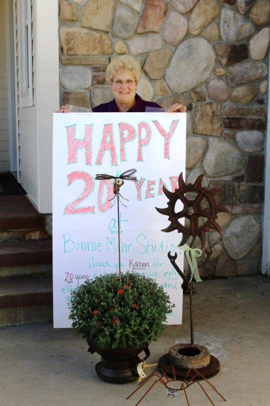 Today's blog is dedicated to someone very special; she has been an employee with Bonnie Mohr Studio for 20 years this summer! Thank you Karen for being a wonderful employee to our company and a wonderful friend and neighbor too! Karen is part of our backbone. Karen goes the extra mile - even when she gets tired. Karen comes in with a smile, and leaves with a smile. She gives 110%, all the time. Karen is the kind of person that you want to have on your team, and we are lucky to have her : ) We 'surprised' Karen last week with a few treasurers to sport in her yard and garden....THANKS KAREN - WE LOVE YOU! I too enjoyed a celebration yesterday, as I turned 34 again....LOL! We baked a good ole' fashioned red velvet cake, (yes, from scratch - see recipe below) and enjoyed a fabulous lunch with chicken on the grill! Autumn favored me with a beautiful day of sunshine and 70 degrees. Wow, what a day.