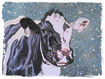 By 5 AM this morning I was busy working in the studio on the 3rd of the 4th "Cow Face", she will be WINTER. She is coming along swift and smooth and since this is a small 8" x 10" I should be able to complete her in a day or so. With temps to climb into the 80's again today, it seems refreshing to work on a 'snow' scene. This piece may also be a new Christmas Card for this year, we will see.