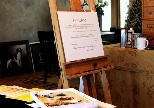 These are the days it is hard to sit indoors and paint - but the show must go on! By the end of the day, I should have the verbiage for my new farmer painting complete and only a day of tweaks remain on the painting itself. Plans are to get this painting to the cities next week for film work (the first stage to get it into reproduction). Painting the wording is a rather slow and tedious process - but I love the heartfelt and genuine warm feeling it gives to the final product, rather than photoshopping it in. Each has their place, but I am loving the look of this verse being hand painted. Please stay tuned for more updates soon!