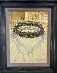 Framed: 13 x 16 with custom wood frame and 23 Karat antiqued gold leaf title plate