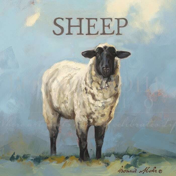 This artwork by Bonnie Mohr captures a sheep with a neutral blue and green background. This series will be perfect for a kid's bedroom or playroom!! Order your charming gallery wrap giclee or print of Sherlock today, and compliment it in a grouping of several other Farm Animal Series images! View additional animal artwork by Bonnie Mohr.
