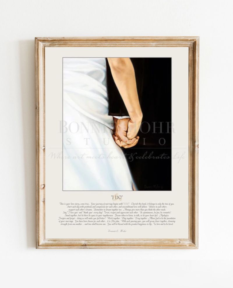Give the gift that will commemorate this special day, e v e r y d a y - for a lifetime! The wedding couple will cherish your unique & thoughtful gift f o r e v e r ! Bonnie can personalize the print or giclee with the bride and groom's names and wedding date! You can write your own blessing wish on the back of the print too!