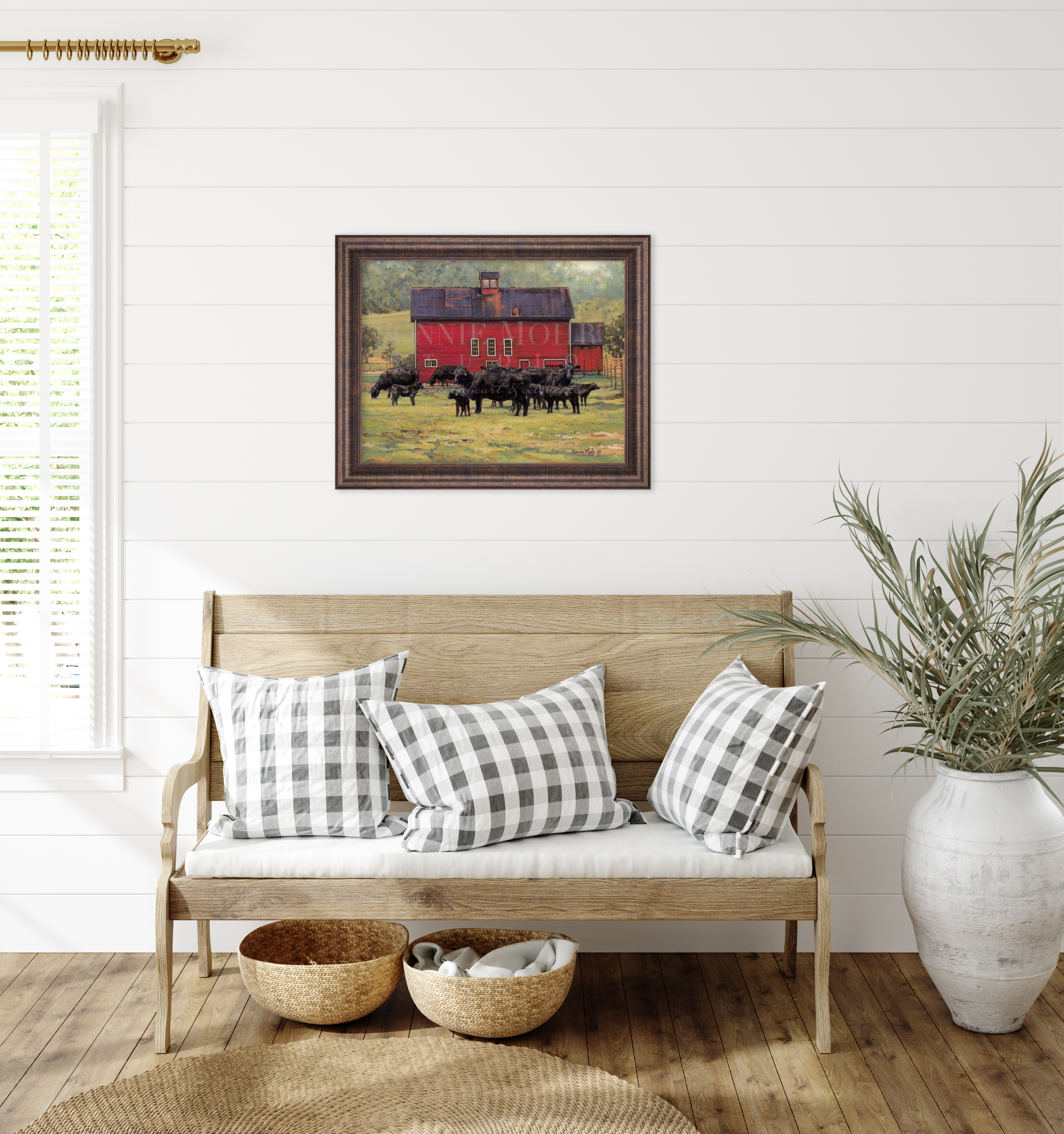 This image is also available in a card. On a beautiful spring day, Black Angus cows gather in...
